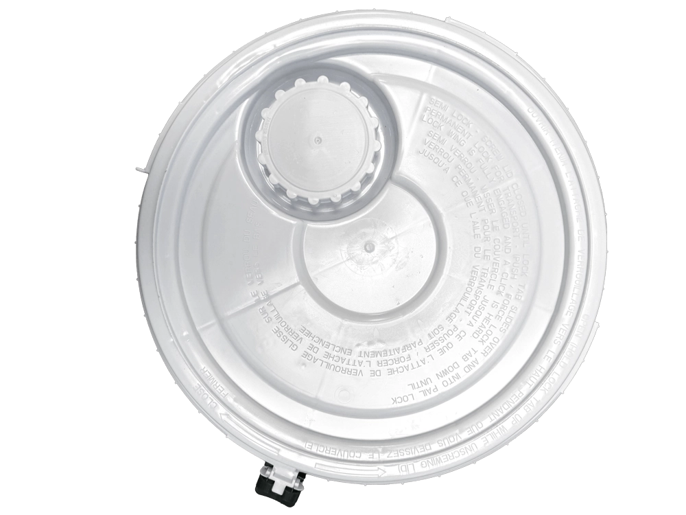 The intuitive lid functions like a jar, making handling effortless. The tamper-evident locking system offers semi-permanent and permanent sealing options.